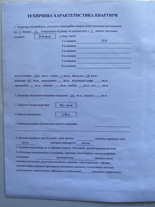 Характеристики квартири: