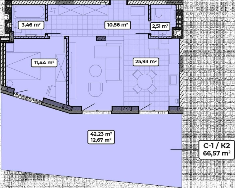 • Загальна площа 66.57 м2