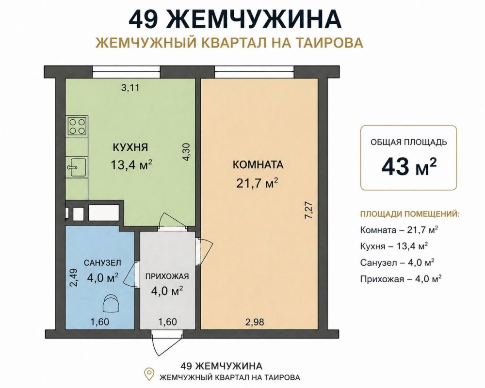 • Загальна площа 43 м2