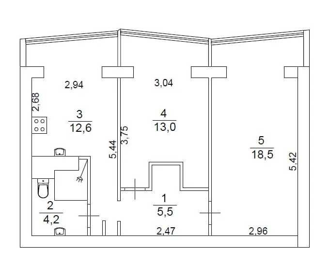 • Загальна площа 53.8 м2