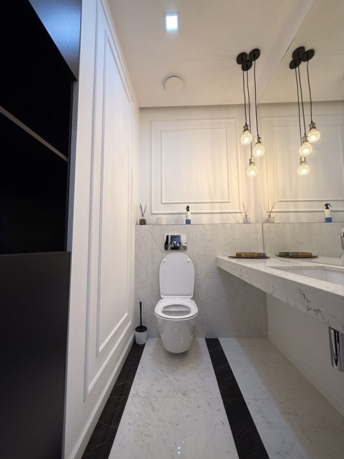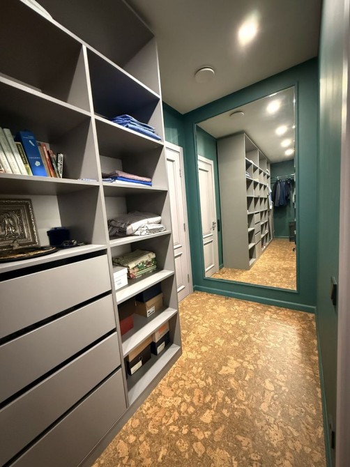 Планировка: кухня-студия, спальня, 2 гардеробных, 2 санузла.