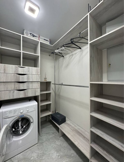 Планировка: кухня-студия, спальня, гардеробная, санузел с джакузи и душевой.