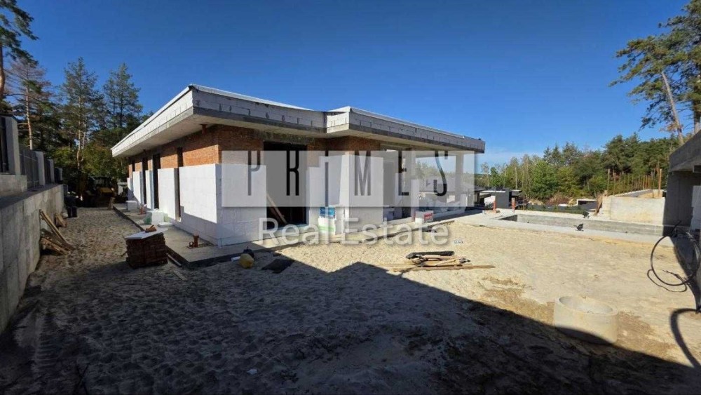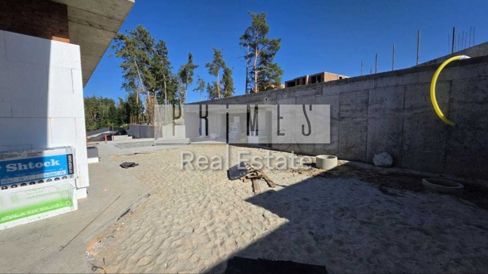 Сучасний будинок біля сосна з цегли знаходиться в закритому котеджному містечку з охороною, площею 315 м2 з цоколем гараж 70 м2 54м2 тераса навіс на 2 авто, додатково паркомісця. Басейн. Перекриття моноліт. Устіл 4 м. Сауна 35 м2.