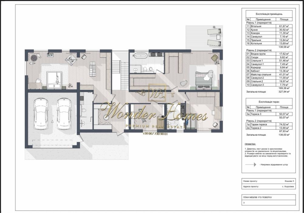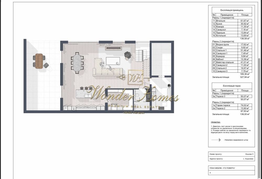 - новый 2эт. дом площадью 328 м² + 138м2 террасы под отделку;