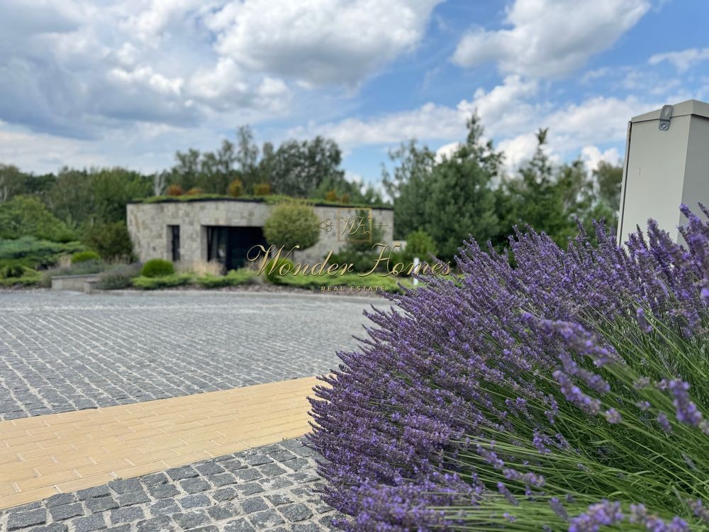 • вокруг — многолетние деревья, сосны, берёзы, декоративные насаждения, лавандовые клумбы