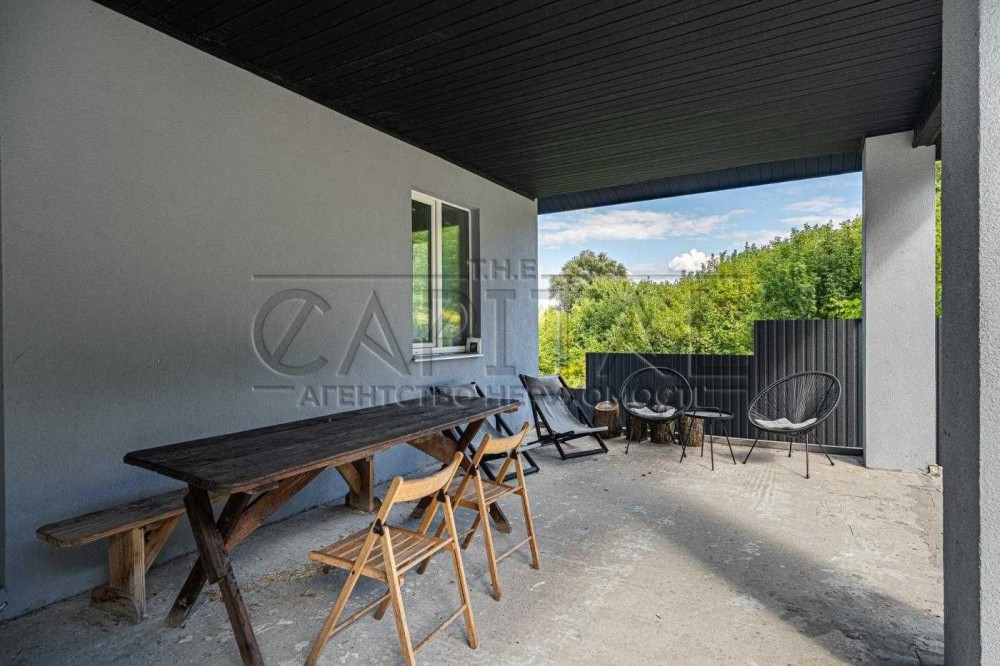Пропонується до продажу сучасний будинок площею 203 м², розташований на затишній непроїзній вулиці. З просторої тераси з панорамними вікнами відкривається чудовий вид на заповідну зону.