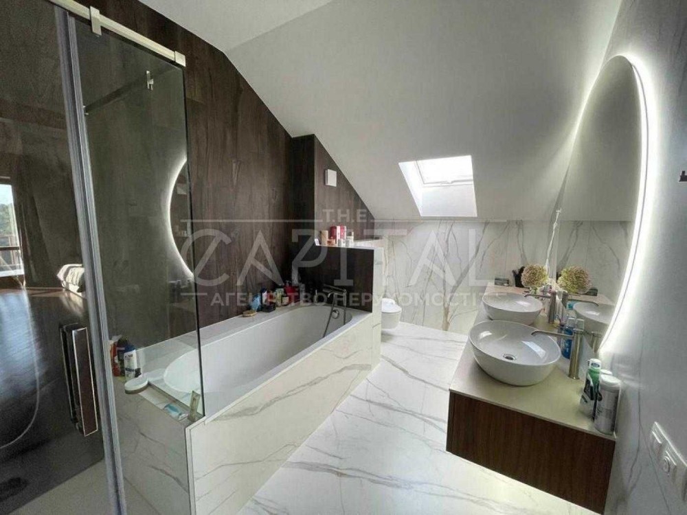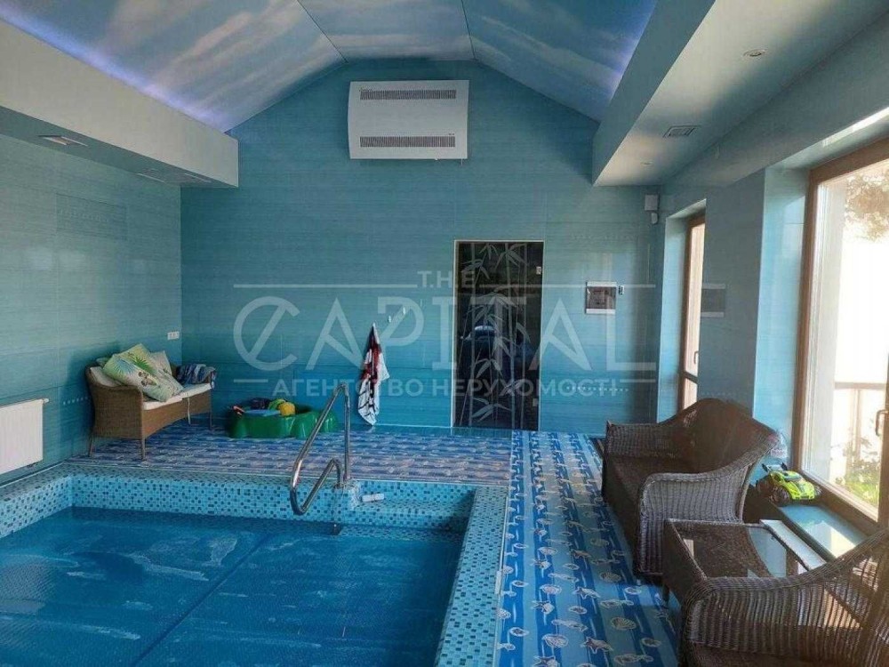 Новий будинок на березі затоки Дніпра, оздоблення, умеблювання та оснащення побутовою технікою 2021 року, 3 рівні, 720 кв. м, житлова - 203 кв. м, кухня-студіо - 43 кв. м, 4 спальні, 4 санвузли, гардеробна, басейн, сауна, джакузі, приміщення для домашнього кінотеатру, більярд, тренажери, гараж