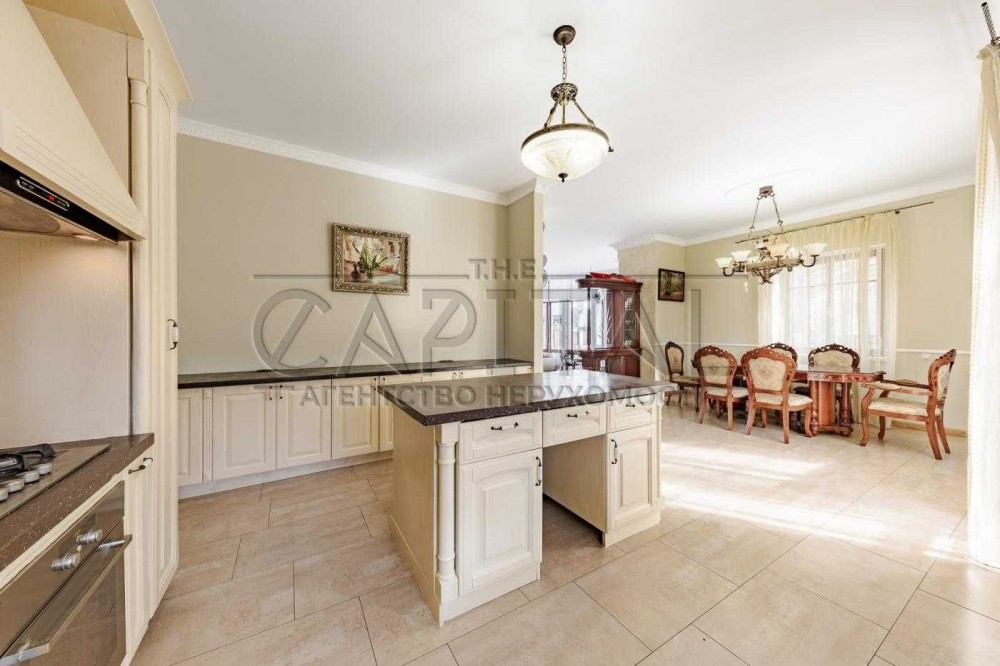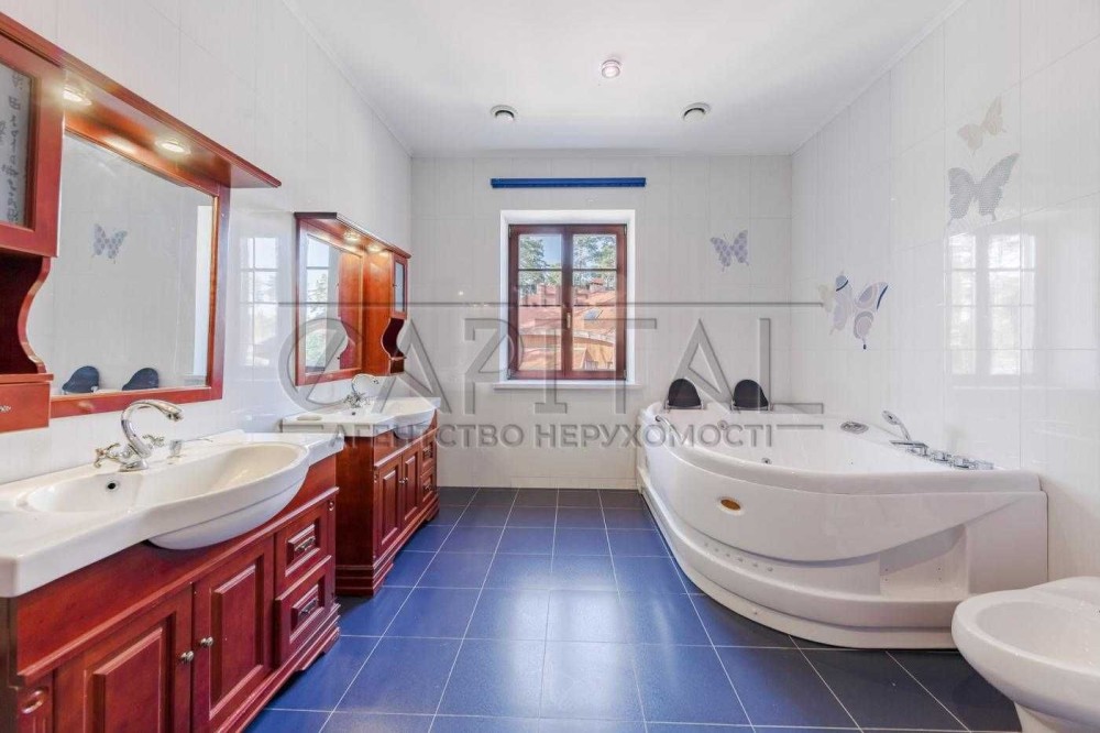 Всього за 12 км від Києва розташована Пуща Водиця (Пуща Лісова) - місце, де представлений просторий будинок площею 330 кв. м на двох поверхах. У цьому відокремленому куточку можна насолодитися всіма зручностями сучасного житла, включно з 7 кімнатами, серед яких виділяється окрема більярдна, дерев'яна лазня, відкритий басейн, озеро і зона для барбекю, а також теплий гараж.