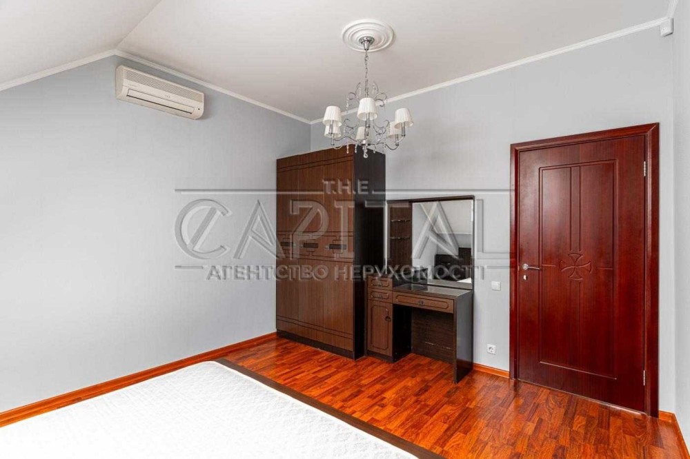 Терміновий продаж 2-о поверхового просторого і якісно-збудованого за індивідуальним архітектурним проектом, будинку площею 176 м² в с. Пухівка в Броварському р-ні. Будинок розташований в престижному закритому товаристві з охороною. Будинок побудований з червоної цегли, утеплений мінеральною ватою ватой ROCKWOLL 80 мм, фасад з цегли Фагот, кровля - фінська бітумна черепиця "katepal", двокамерні вікна "Века" з автоматичними захисними ролетами кольору золотий дуб, декоративна штукатурка, іспанская плитка, дуб паркет-дошка, імпортна сантехніка. Ділянка розміром 14 соток має правильну прямокутну форму, за проектом розміщено індивідуальний житловий 2-о поверховий будинок та гараж на 2 авто (53м2). Планування будинку забезпечує комфортне проживання великої родини. Планування: 5 спален, кухня, вітальня, 2 с/в. Якісний ремонт, дерев'яні меблі, кухонний гарнітур з натурального дубу. Під’їзд до будинка асфальтованою освітленою дорогою, глухий кут вулиці з виходом на піщаний пляж р. Десна, поруч ліс, озера, ресторан, магазин, зупинка громадського транспорту та бази відпочинку. Живописне, красиве місце, чисте повітря, для постійного проживання, все навколо забудовано. Інженерія та комунікації: Електрика — Виділена лінія електроенергії на 20кВт. • Газовый двоконтурний котел • Електрокотел • Діючий камін • Бойлер • Система очищення води • Кондиціонери • Підключено інтернет • Автоматичні ролети на вікнах. • Скважина • Каналізація — два переливні дренажні септики • Автополив • Сигналізація та відеоспостереження • Автоматичні ворота. Будинок продається з меблями та технікою. 218000 у. о. Можливий торг!