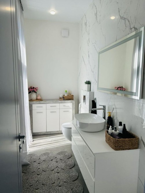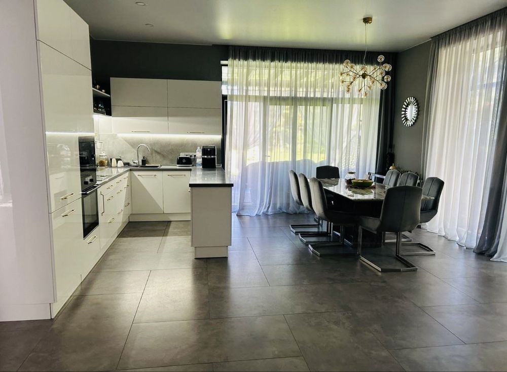 Коротко о наполнении: итальянская сантехника, дорогая мебель и техника на заказ, которая вся остается, полы с подогревом водяные по всему дому, плитка на полу, стены венецианская штукатурка ( гипсокартона нигде нет ), система фильтрации воды, медная проводка, бронированные и алюминиевые окна, бетонные перекрытия крыши, фундамент ленточный 1.40, стены газобетон 400мм, утеплитель обработанный пенопласт 100мм. Со всех сторон приятное соседство новостроек.