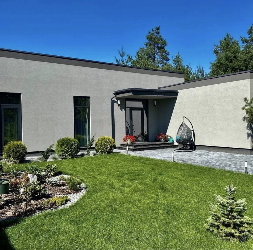 Представляет собой: дом 197м2 снаружи и внутри 140м2+20м2 терасса+37м2-гараж на 1 авто, 20 сот.приват участок огорожен капитальным забором, автоматические ворота, двор выложен плиткой, озеленение и освещение территории, видеонаблюдение выведено на телефон, сигнализация. При постройки дома были использованы дорогие, высококачественные материалы, известных европейских производителей, так как он строился для себя по авторскому проекту.