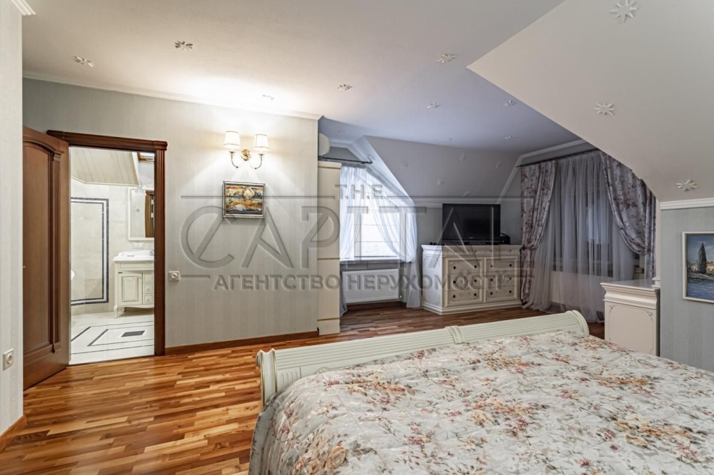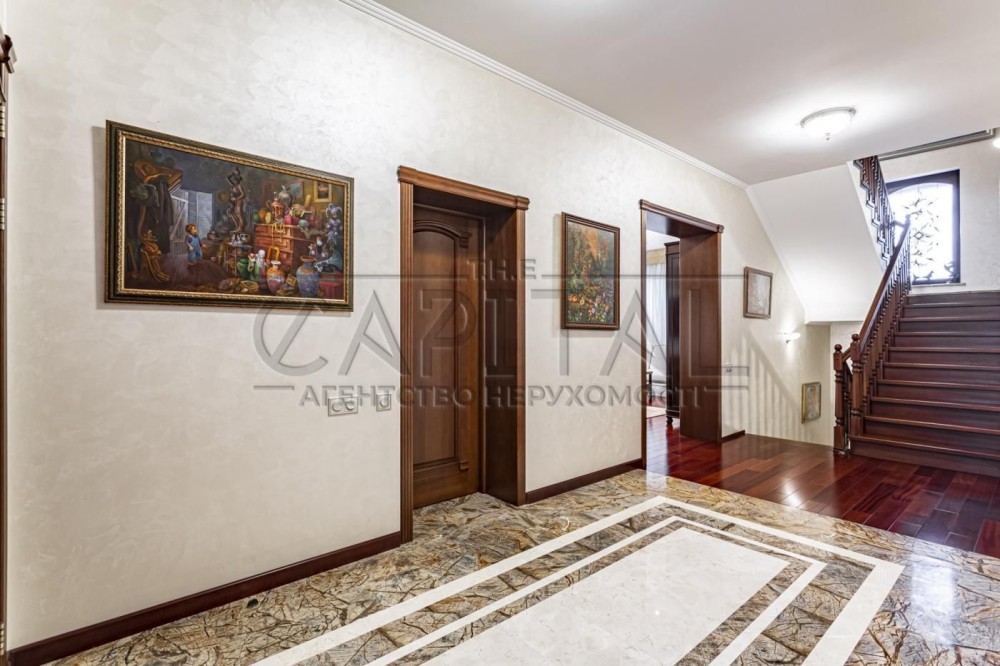 Продажа дома с бассейном и газом, СтоянкаПродаж будинку з басейном і газом, СтоянкаПропонований будинок - садиба проектувалась та будувалася для проживання та відпочинку великої родини з можливістю автономного проживання. Будівництво велося три роки з 2003 по 2005 роки, з дотриманням усіх технологій переважно природних та екологічно чистих матеріалів, з великим запасом міцності. Зручність транспортної розв'язки, географічне розташування, інфраструктура дають змогу поєднувати роботу у столиці з відпочинком на природі у своїй зоні комфорту.Садиба включає ділянку землі 23 соток, в кооперативі, що охороняється.Основний будинок має чотири поверхи, де другий та третій житлові, перший – технічний, допоміжний, четвертий – ігровий.Загальна площа приблизно 430 кв.ОСНОВНИЙ БУДИНОК1 ПОВЕРХ - гараж, гардеробна, винотека, комора, пральна, сауна, кімната відпочинку, санвузол2 ПОВЕРХ - вітальня, ігрова, передпокій, кухня-їдальня, санвузол3 ПОВЕРХ - спальня, кабінет, дитяча, вбиральня, 2 санвузли, коридор, сходиГОРДАК-ЯХТА - обладнаний в романтичну ігрову кімнату-яхту зі штурвалом, таємними кімнатами та кондиціюваннямОдноповерхове приміщення із технічним підвалом для обслуговування басейну із загальною площею 250 м.кв.Для прийому гостей, крім будинків, барбекю обладнана кімната-паб з теплою підлогою, кондиціюванням, проведеною гарячою водою та зручними меблями.В окремому приміщенні знаходиться більярдний зал з каміном, кондиціюванням та теплими підлогами. Стіл великий, для більярда, виготовлений на замовлення майстрами. Так само в приміщенні знаходяться критий басейн з фільтрацією води киснем, з джакузі, водоспадом і потужним протитечією.Тут же нова фінська сауна на дровах та інфрачервона кабіна на 2 особи.3 гаража - 1 в будинку і 2 в окремому приміщенніБарбекю має підведену воду, піч із мангалом, банкетний стіл на 8-10 чол. А також художньо оформлене приміщення з телевізором та диванами. Загальна площа близько 80 кв.На території є тенісний корт із спеціальним покриттям.Уся територія озеленялася згідно з проектом ландшафтною фірмою. Концепція передбачала максимум вічнозелених дерев, розарій, багато кольорів та газон.Також щорічно висаджуються сезонні квіти у горщики зі спеціальним кріпленням.Для економії, розширення лімітів та зручності експлуатації договору з електро та газопостачання розділені на два будинки та два лічильники. До будинку підведено кабелі з різних підстанцій, з лімітом 15 та 10 кВт, відповідно.Водопостачання походить із власної свердловини глибиною 76 метрів з водою, яка перевищує за якістю всі показники (аналізи води поводилися регулярно). У садибі є дві котельні, де відбувається подальше доочищення води, через систему підібраних фільтрів. Теплопостачання здійснюється через теплі підлоги та батареї з двох котелень, з основними та резервними газовими чеськими котлами, будинок обладнен покімнатними температурними регуляторами та загальним комп'ютером, що враховує всі погодні та індивідуальні фактори.Зливова підземна каналізація відводить воду ві