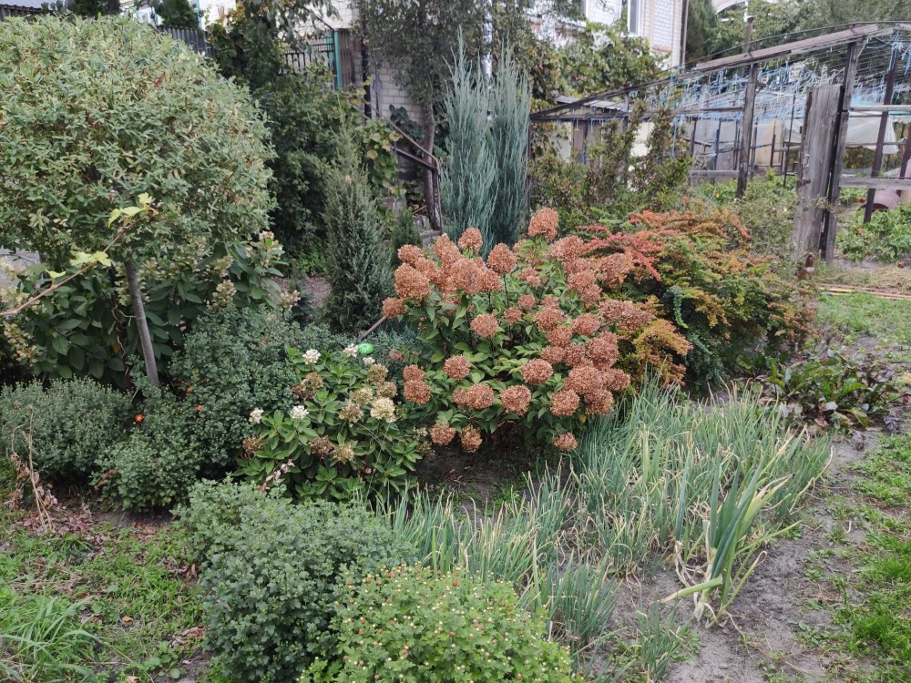 Много зелёных насаждений, фруктовые деревья, сортовой виноград, ягодные кустарники