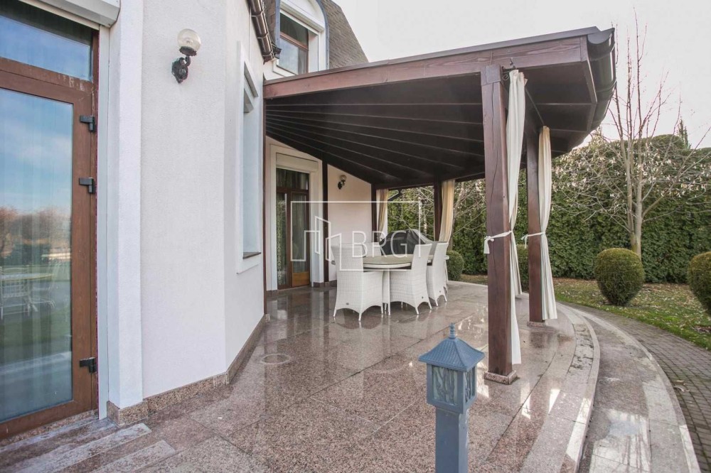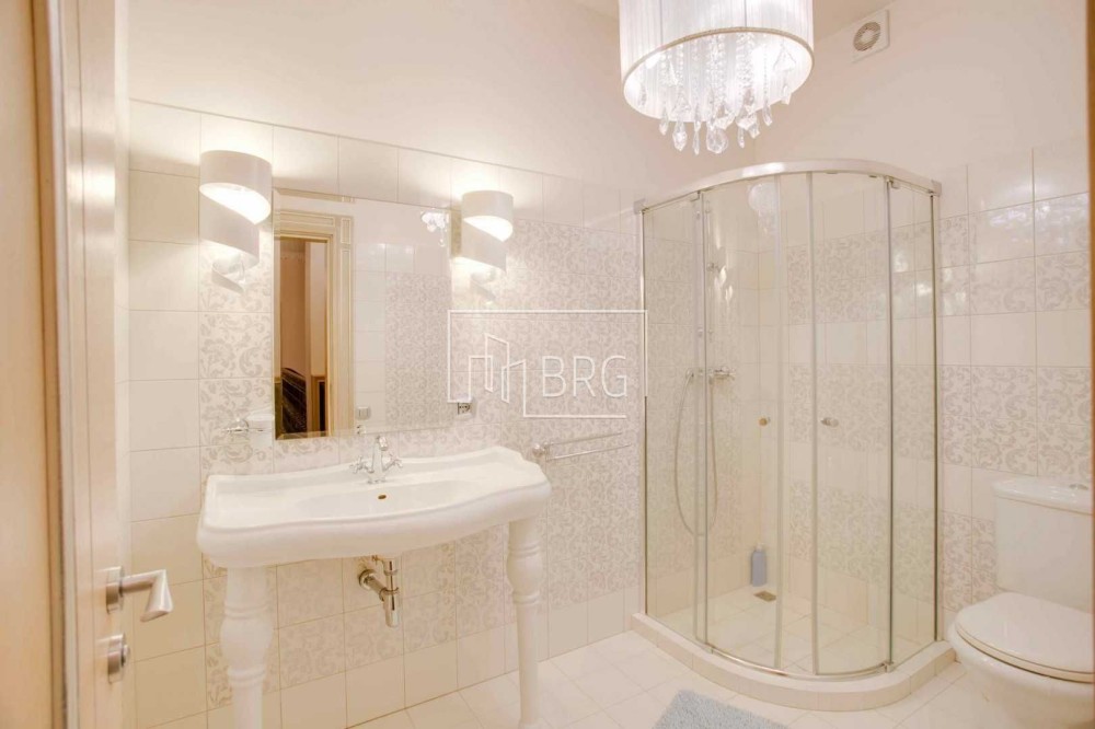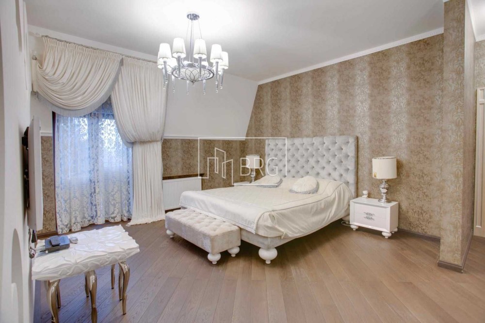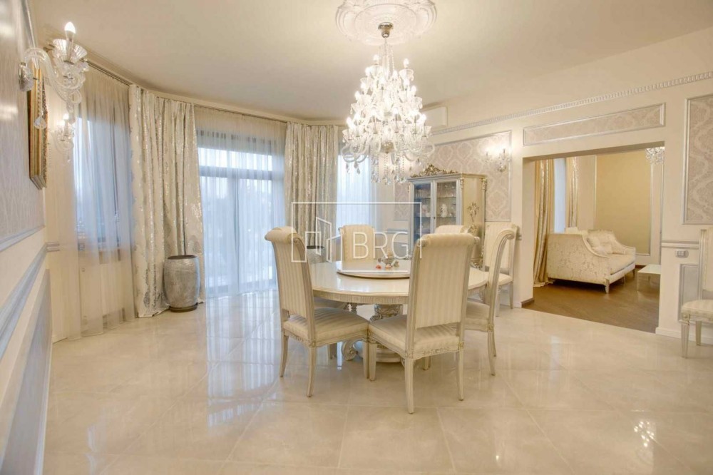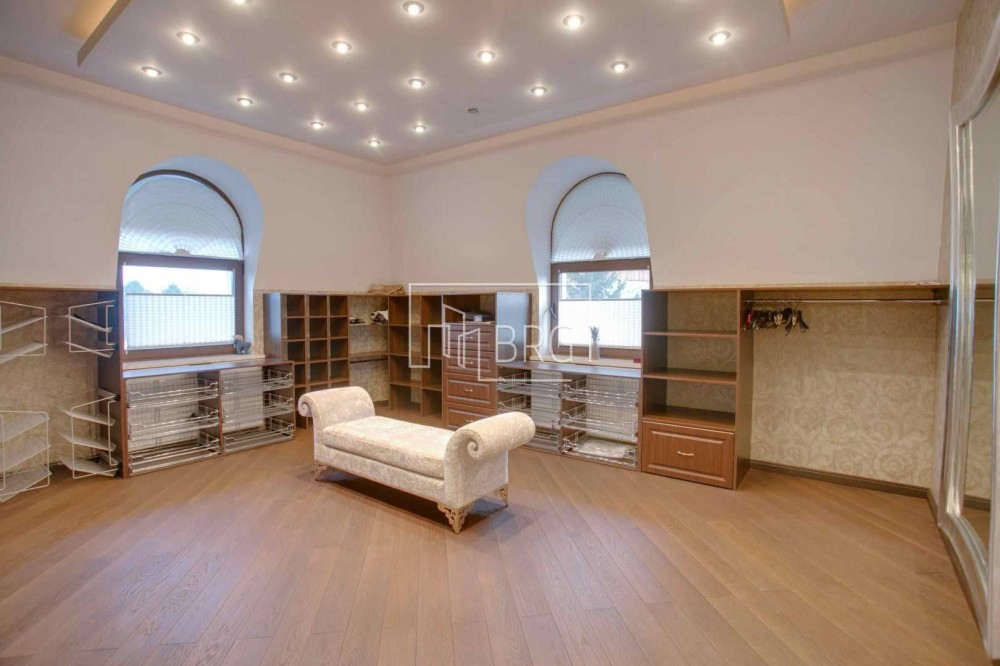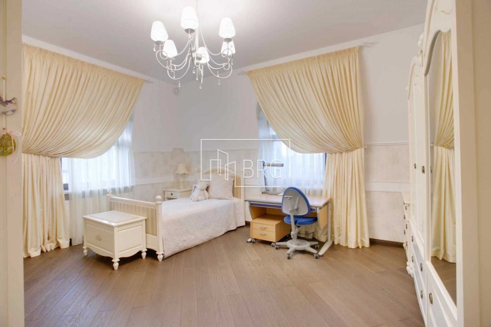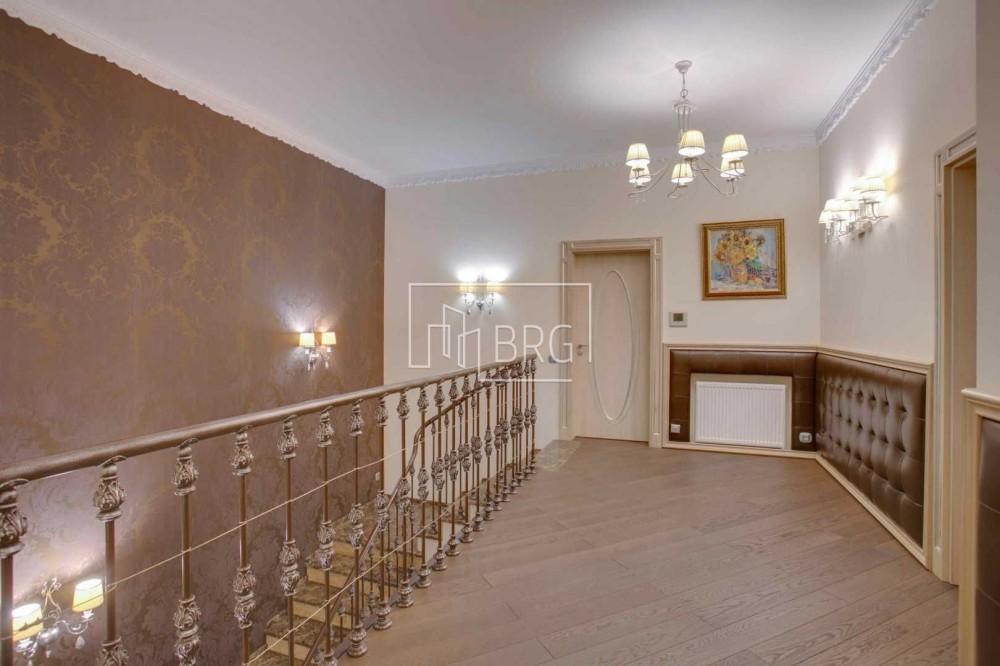 Дизайнерский ремонт. В отделке использованы натуральные материалы: мрамор, элементы декора и камин из оникса, дубовый паркет, натуральная кожа, декоративная штукатурка. Дом полностью укомплектован мебелью и оснащен бытовой техникой, итальянская мебель и светильники, итальянская сантехника.