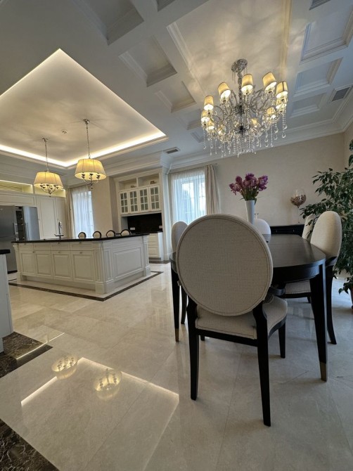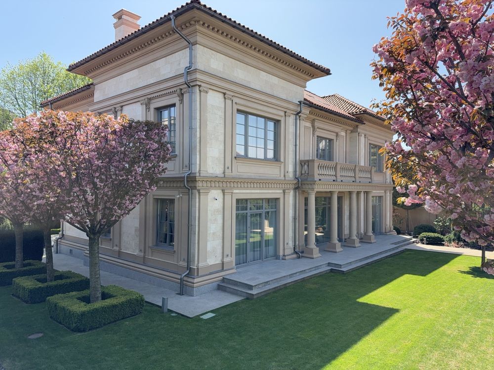 • Материалы: керамоблоки Porotherm 50 см, керамическая черепица, отделка — травертин, мрамор, гранит