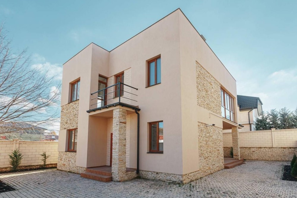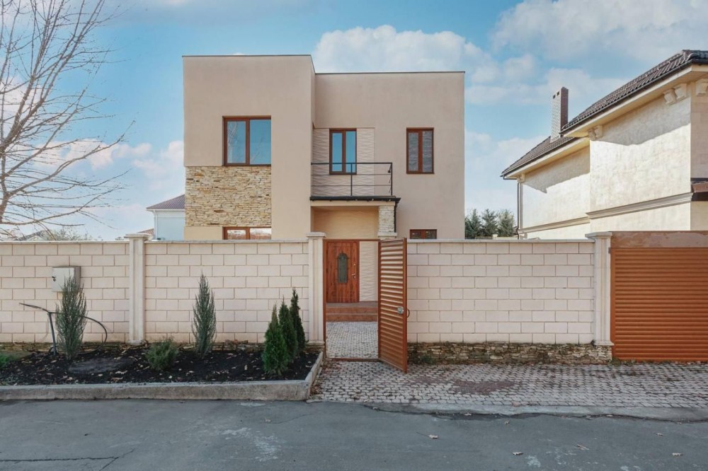 Дом 2-х этажный, из газобетона. S=148 кв.м. Площадь участка 3 сотки использована максимально комфортно - сад , зона отдыха , зона барбекю и зона для парковки авто . Архитектурное решение дома позволяет использовать площадь 148 метров квадратных продуктивно : каждая комната наполнена светом , благодаря панорамному остеклению ,