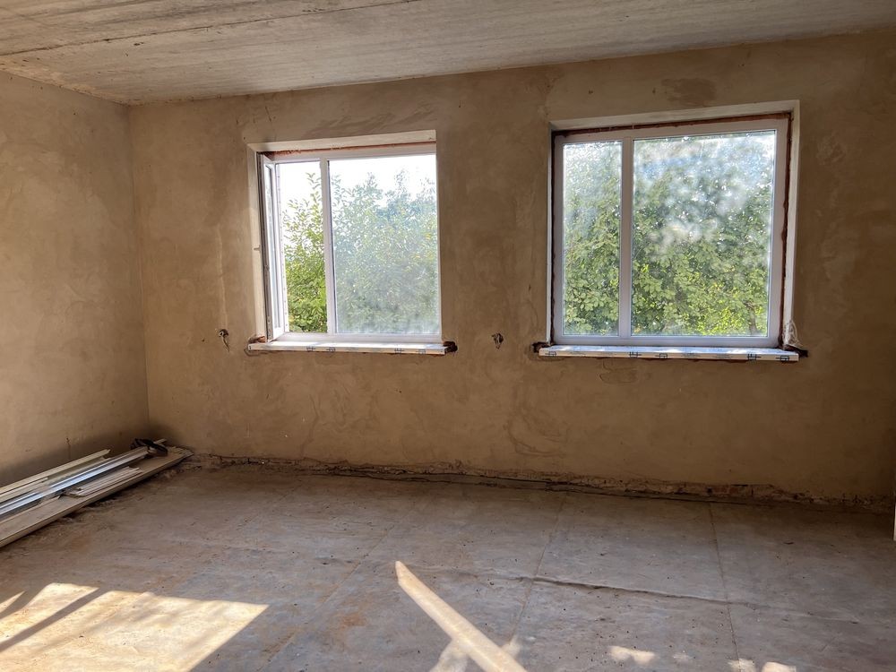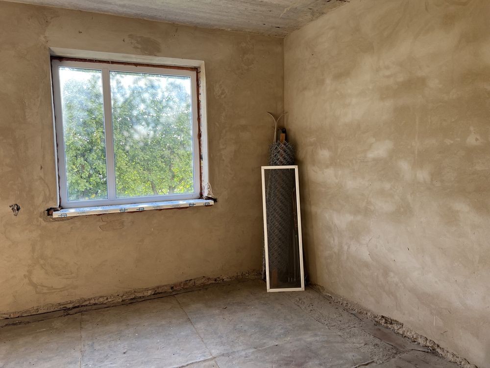 Сделана черновая стяжка полов и штукатурка стен, протянута проводка, розетки, сделана канализация с септиком. Под чистовой ремонт! Высота потолков 2,9м. Поставлены все металлопластиковые окна с пластиковыми подоконниками. Добротная крыша из листового алюминия. Камеры видеонаблюдения.