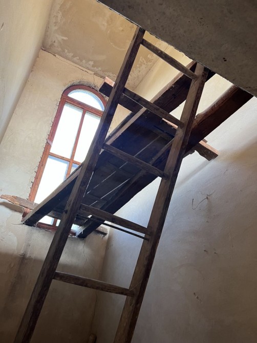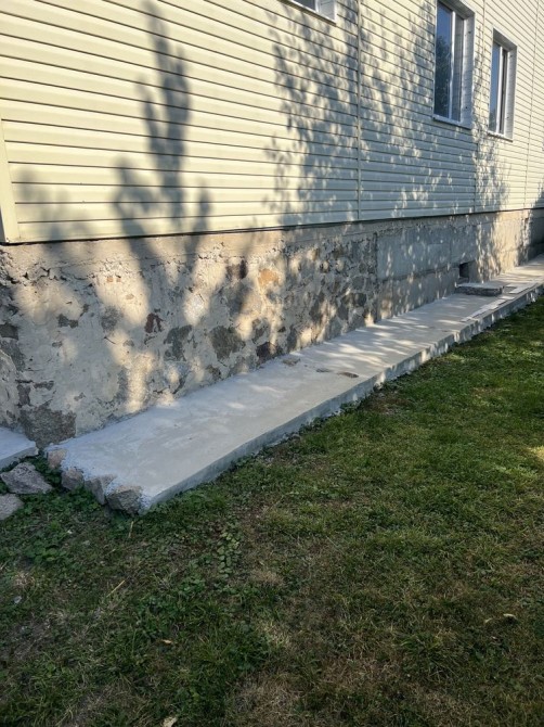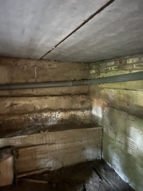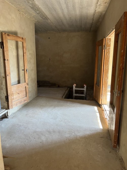 Двухэтажный дуплекс (половина дома) 200 м2, с большим подвалом с небольшим окном под первым этажом (плюс 30 м2) из красного кирпича (стены шириной 1,5 кирпича), с межэтажными бетонными перекрытиями.