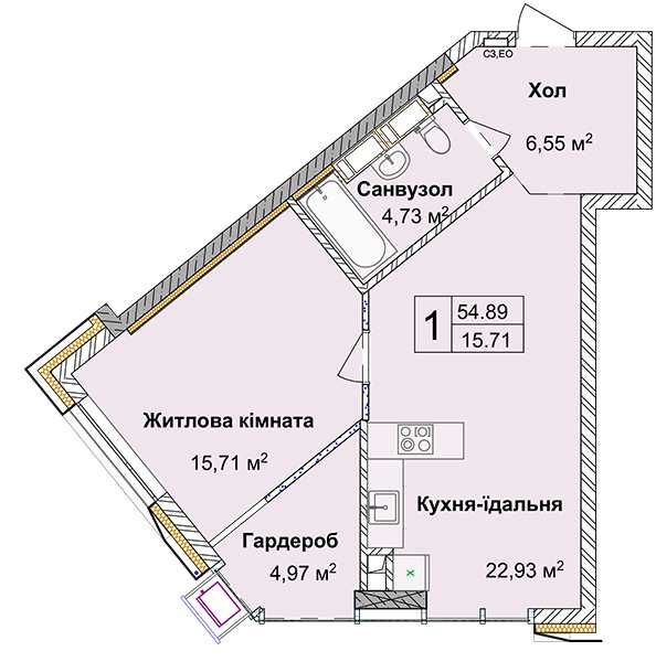 • Загальна площа 55 м2