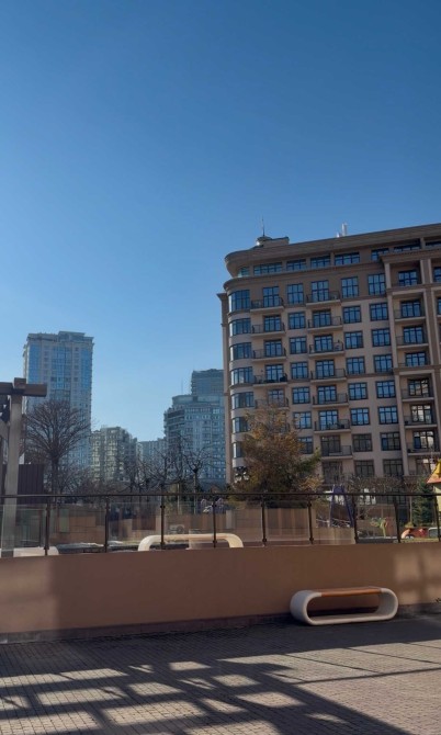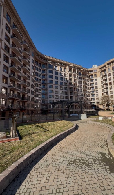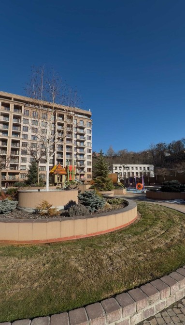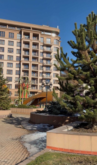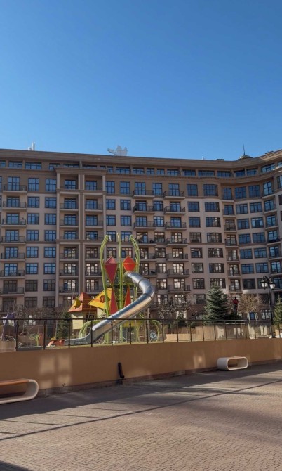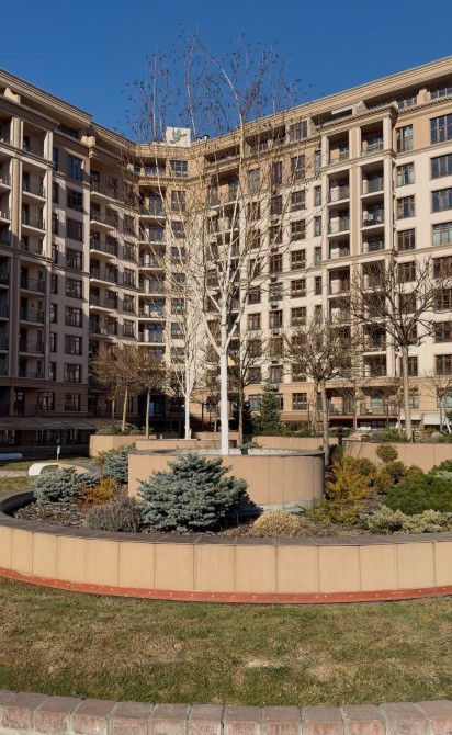 У внутрішньому дворі будинку знаходиться дитячий майданчик поруч з ландшафтною зоною відпочинку та фонтаном