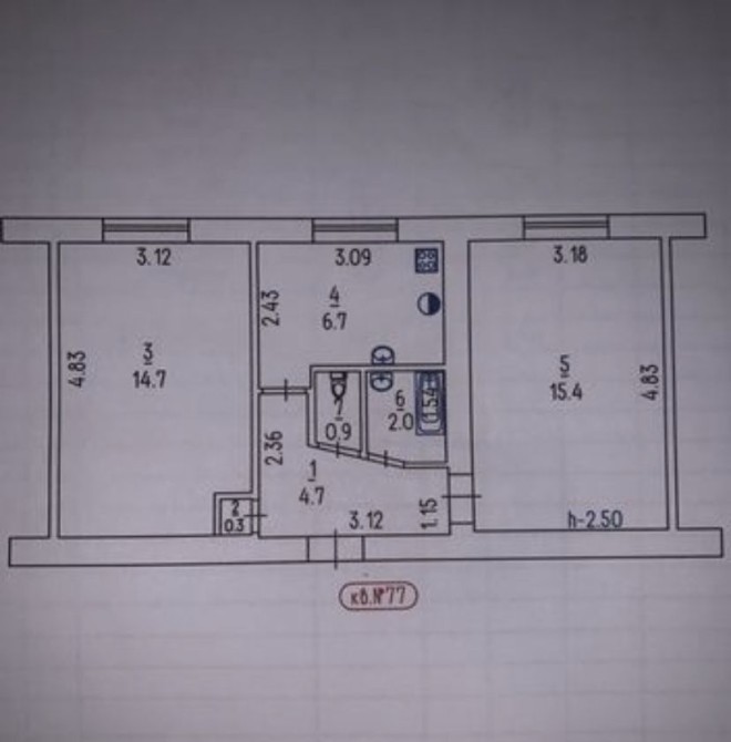 • Площа кухні 6.7 м2