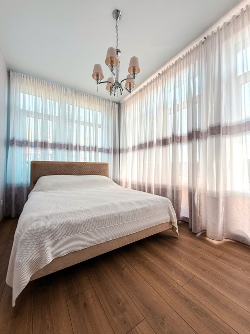 Распланирована в кухню, раздельно спальня, терраса по всему периметру квартиры, просторный коридор, гардеробная