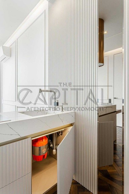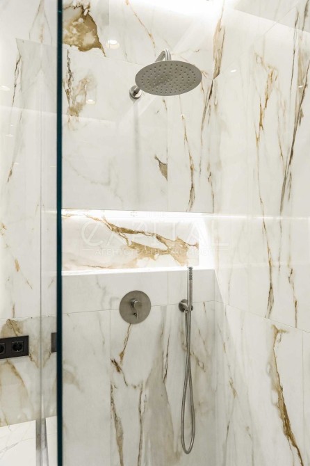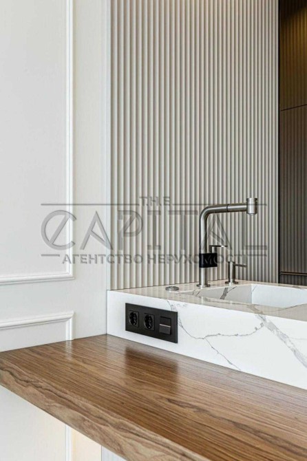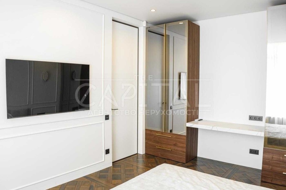 Преміальний ремонт – авторський дизайн із використанням тільки натуральних та екологічних матеріалів. Натуральний паркет, двері заввишки 2,8 м, елітна сантехніка Grohe, італійська плитка та ексклюзивні оздоблювальні елементи створюють атмосферу витонченого смаку.