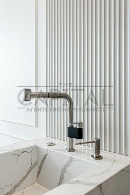 Вишуканий кухонний гарнітур доповнений усіма необхідними побутовими приладами найвищого класу.
