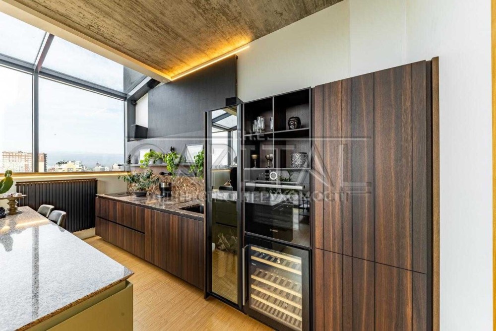 Додатковий комфорт забезпечить інноваційна техніка Bosch, шафа для вина, а за кухонним острівцем зручно не лише випити каву, а й записувати подкасти.