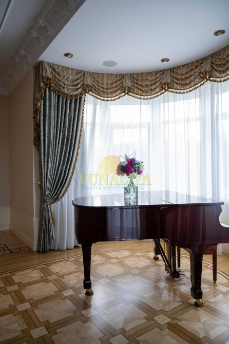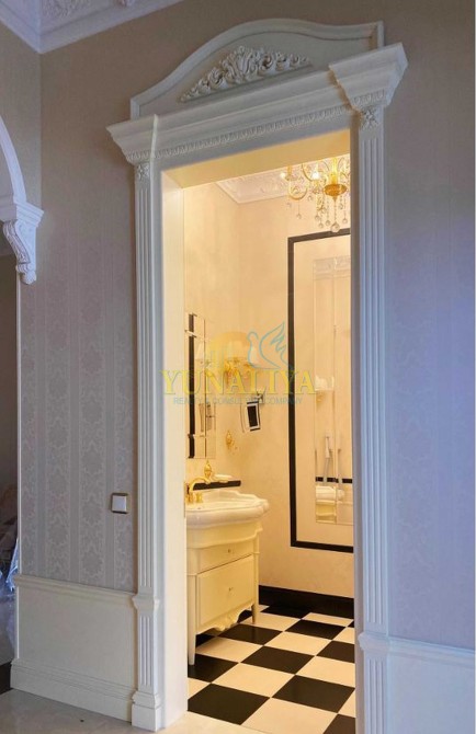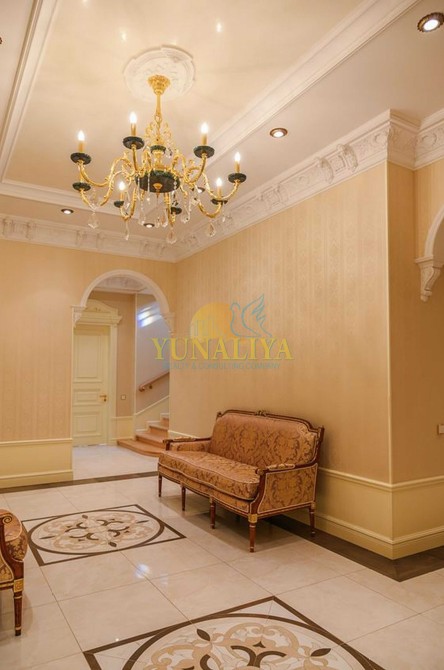 БЕЗ КОМИССИИ! Домовладение расположено в 12 км от Киева в котеджном городке в пгт. Подгорцы. В городке своя инфраструктура - газ, скважина, электро ТП, септик "топаз", охрана. В 5 мин езды находится зона отдыха на голубом озере, рестораны и супермаркеты, торговый городок с бутиками и кинотеатром. На участке 30 соток расположен Основной дом, общей площадью, 860,3 кв. м и Гостевой дом, 341,4 кв. м, беседка c отоплением 56 кв. м, фонтан, крытая беседка с барбекю. На участке выполнены ландшафтные работы по декоративному озеленению и высажен фруктовый сад. Дома стоят на сваях, стены из красного полнотелого кирпича, покрытие кровли натуральная черепица «Tondach» (Австрия). Толщина стен основного дома в 2 кирпича+утепление, гостевого дома 1,5 кирпича +утепление. Забор из декоративного кирпича фагот высотой 3 м по всему периметру, мощение дорожек - клинкерный кирпич производства Германии. Подъездная группа, а также крыша и водосточная система имеют электроподогрев автоматический. Автоматический полив из собственной скважины. Выполнена дренажная система по всему участку. Окончание отделочных работ - декабрь 2020 г. Фундаменты и балюстрада, крыльца, террасы и балконы выполнены из гранита. Парковка на 6 машин, детская площадка, вольер для собаки. На первом этаже имеются две крытые террасы общей площадью 56 кв. м с выходами из центрального входа, а также из гостиной и бассейна, откуда открывается великолепный вид на сад. Также в дом есть дополнительный вход для персонала и вход для охраны. Из трех спален есть выходы на собственные балконы-террасы, 46,3 кв. м, где можно разместиться с шезлонгом и кофейным столиком. На фасаде расположены крепления и питание для новогодних декораций. Парадный вход через прихожую, которая оборудована встроенным шкафом, где можно снять верхнюю одежду. Через витражные двери ручной работы мы попадаем в мини-гостиную с мягкой зоной «Angelo Cappellini». Здесь есть также гардеробная для хозяев. Вход на кухню, в кабинет столовую и гостиную, гостевой туалет, вход в спа-зону и на второй этаж. Сюда же можно пройти из гаража и подсобных помещений. Из холла мы попадаем в просторную столовую, в которой столовая группа на 10 персон. На полу художественный паркет, лепные гипсовые багеты, высота потолков - 3,5 м, на стенах тканевые обои, люстры «Asfour Crystal», мебель «Jumbo Collection» по индивидуальному заказу. Резные витрины вместят в себя элементы сервировки, а французские шторы и блекаут, управляемые с пульта создадут комфортную обстановку даже в самый солнечный день. Есть выход на террасу. В гостиной установлено акустическое оборудование «Monitor Audio» для просмотра фильмов и передач в формате домашнего кинотетра. Кабинет из черешни, выполнен по индивидуальному проекту со столом и мягкой частью «Jumbo Collection». В кабинете есть камин с чугунной топкой и стеклянной дверью гильотинного типа. Отделка каминного портала мрамор «Rossо Portugalo». Установлен бильярдный стол. На полу ковролин производства Бельгии. Кухня немецкого производите