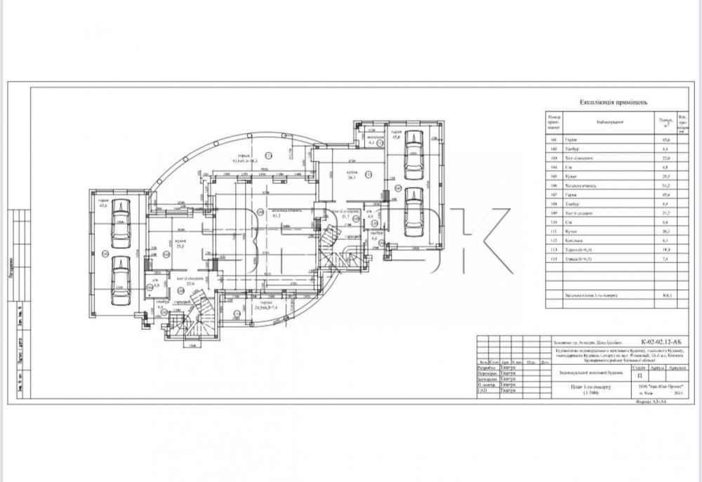 В будинку 2 гаражі кожен на три автомобіля з автоматичними ролетами
