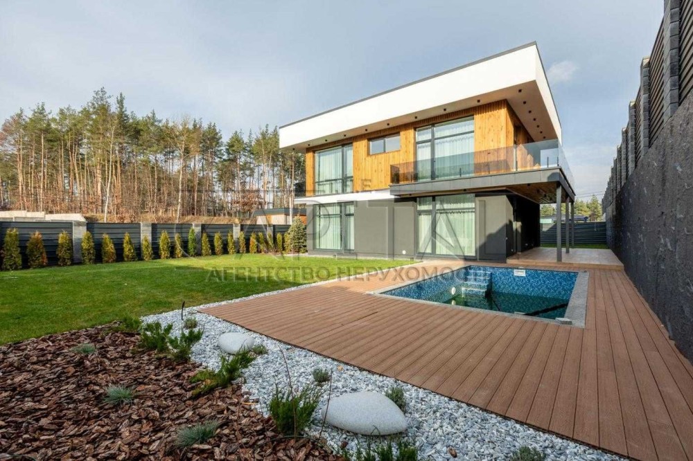 Ділянка з великою критою терасою, якісно зробленим басейном, навісом на 2 авто та доглянутим ландшафтом
