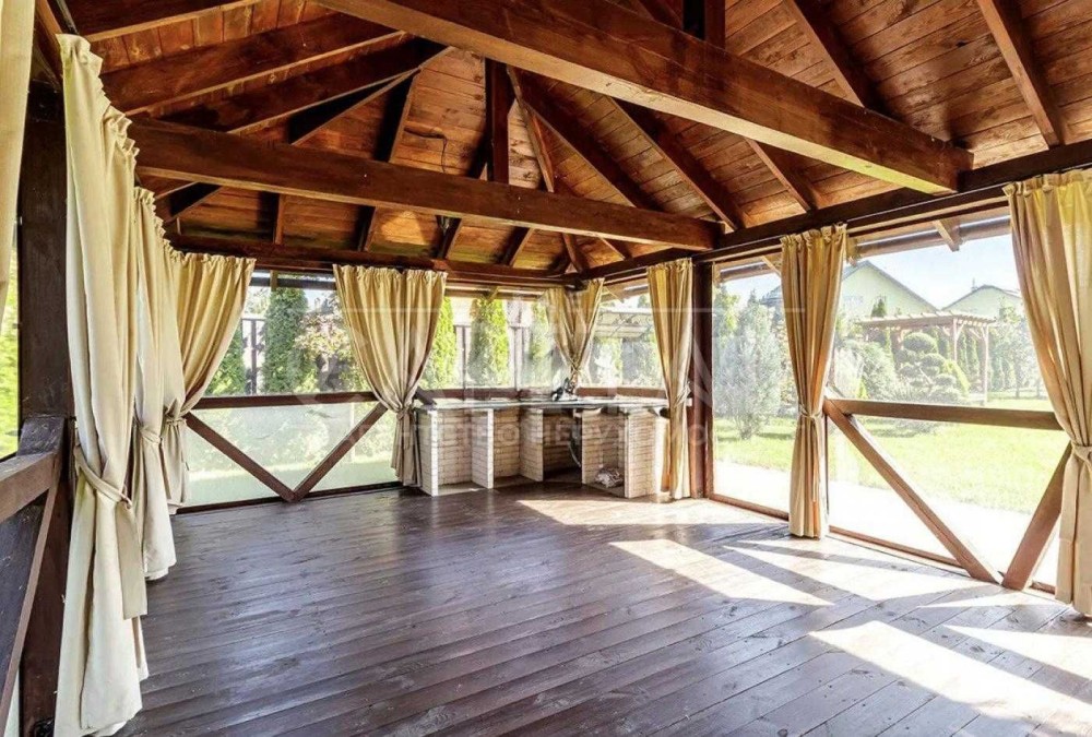 Ділянка 18 соток з продуманим ландшафтним дизайном: висаджені рідкісні декоративні дерева, змонтована автоматична система поливу з окремої свердловини. Також, на території облаштована повноцінна зона відпочинку з мангалом, піччю та коптильнею, простора альтанка з кухнею. Окремо збудований гостьовий будинок, у якому розміщена баня на дровах та басейн.