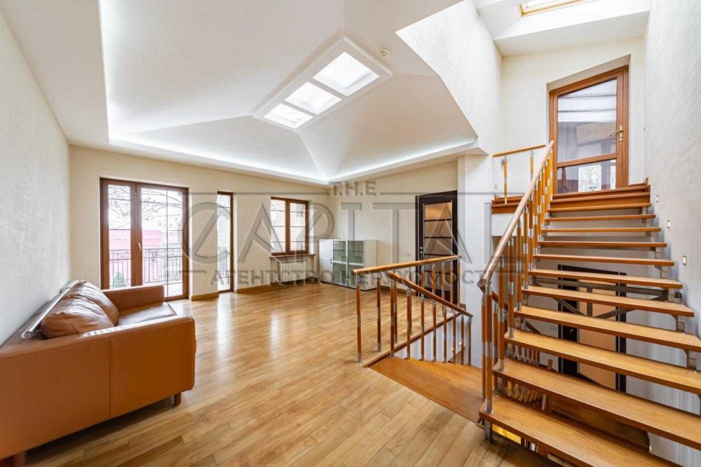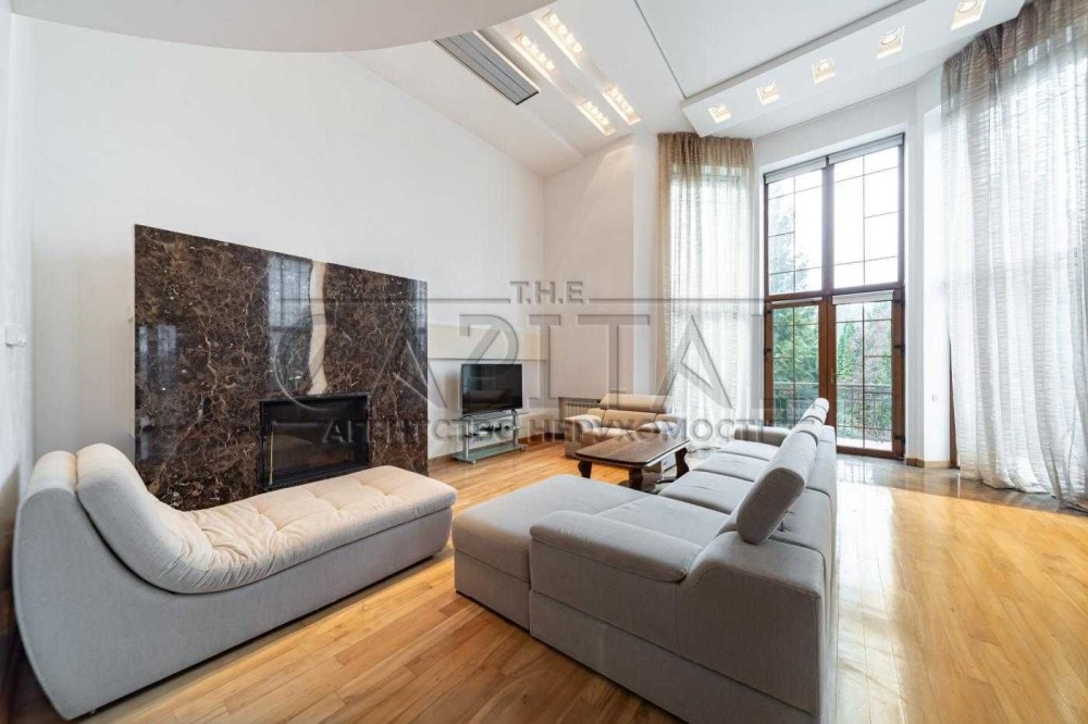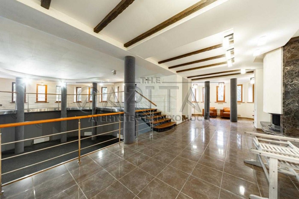 1 рівень: простора вітальня з каміном (H = 6 м), кухня, тераса, кімната відпочинку з виходом у сад, гардероб, спортзал, сауна.