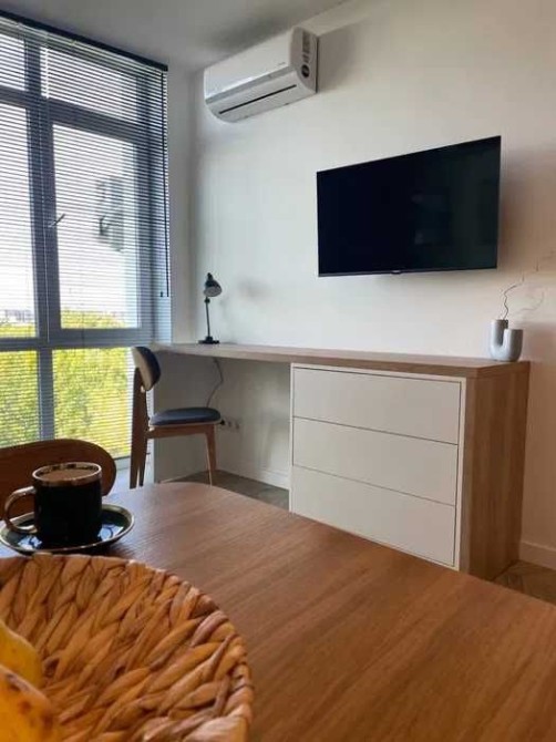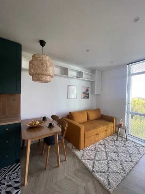 У квартирі загальною площею 45 м2 є просторий коридор з прихожою, кухня-студія з розкладним диваном та робочою зоною, спальня з ліжком та ортопедичним матрасом (має підйомний механізм) та гардеробною. Зі спальні є вихід на відкритий балкон площею 6м2, з видом на парк. Індивідуальне опалення + підігрів підлоги по всій квартирі, крім спальні. Є вся нова необхідна техніка: Пральна машина. Холодильник. Посудомийна машина. Духова шафа. Газова варильна поверхня. Витяжка. Кавомашина. Електрочайник. Телевізор. Кондиціонер. Пилосос Підключений інтернет (оптика). Є інвентор та батарея, яка забезпечує квартиру світлом в автономному режимі протягом 20-ти годин.
