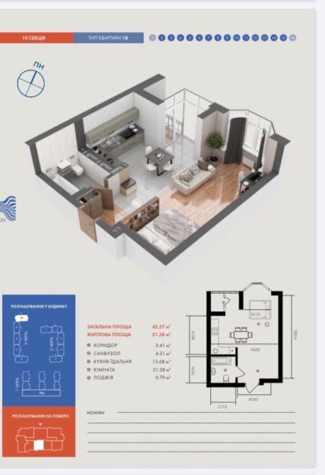 • Загальна площа 45 м2