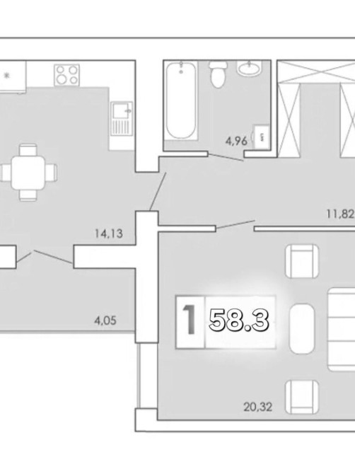 - Загальна площа 58.3 м²