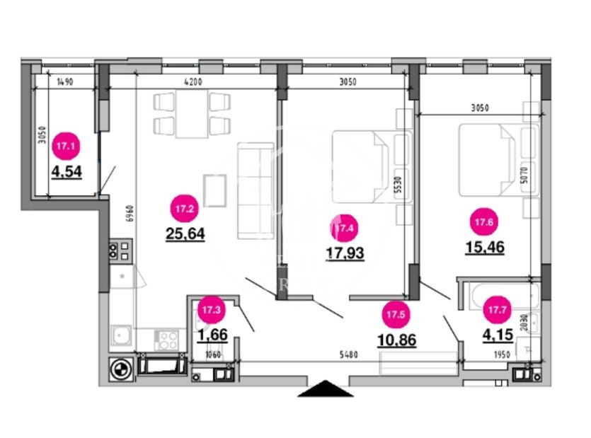 - Дві ізольовані кімнати: (17,9 м² та 15,4 м²).