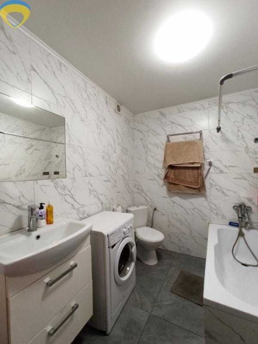 Кухня обладнана теплою підлогою для додаткового комфорту, а просторий санвузол оснащений ванною.