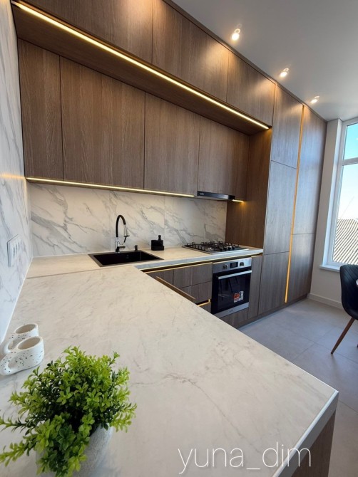 У квартирі виконано стильний сучасний ремонт у трендових тонах.