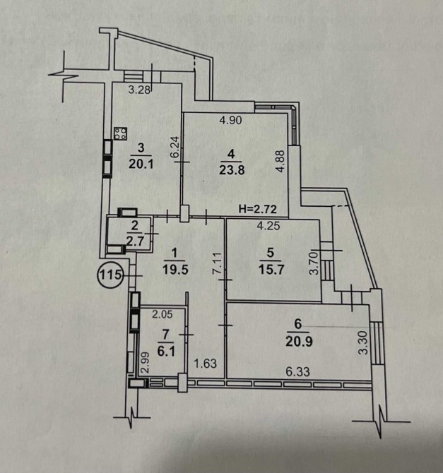 – три окремі кімнати (23,8 м², 20,9 м² та 15,7 м²)
