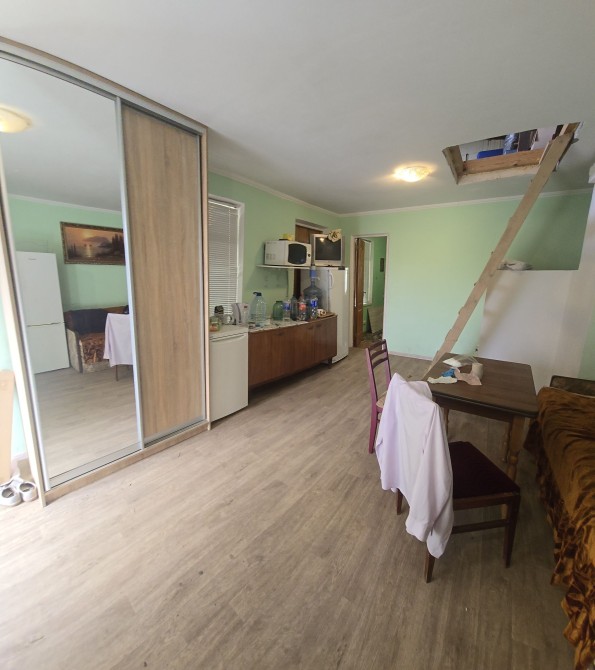 В гостьовому будиночку є душ, кухня, житлова кімната. Пічне отоплення.