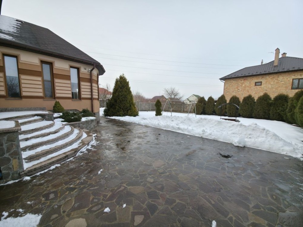 Розкішна територія вимощена каменем та бруківкою, виконано ландшафтний благоустрій