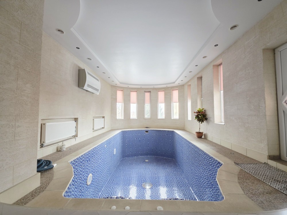 для басейну (автоматичний контроль pH, ультрафіолет, солева система без хлору, теплообмінник) тепла підлога у всіх зонах де плитка