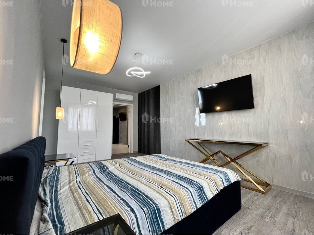 В комнате двуспальная кровать с хорошим матрасом, смарт-тв, кондиционер, шкаф для хранения вещей и выход на балкон ( он проходной на кухню).