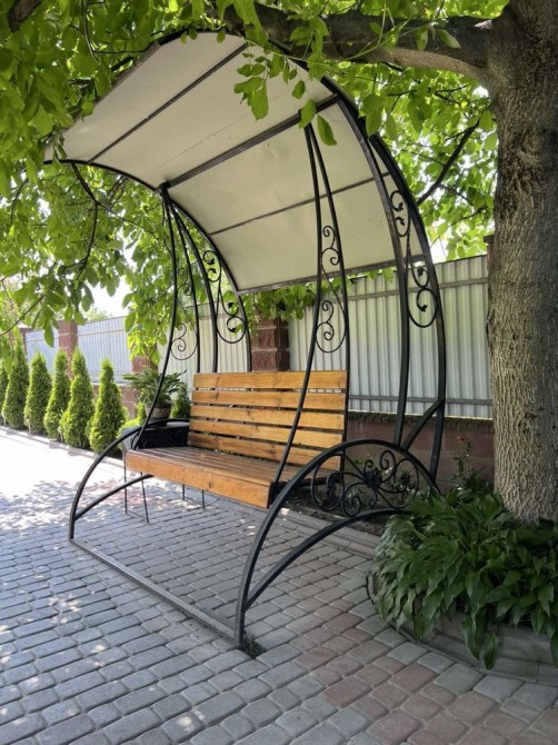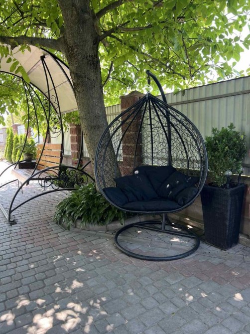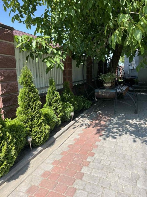 Прибудинкова територія доглянута: бруківка, газон, озеленення туями та самшитами. Є зона відпочинку для дітей і дорослих.