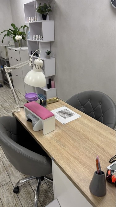 У вартість входить - робочий стіл майтра манікюру, настільна лампа, стелаж, користування педикюрним кріслом, сухожар.