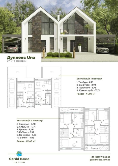 Розстрочка 18 міс. Внесок 30%. Продаж дуплексу 87 кв.м ділянка 2,3 сот