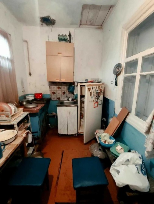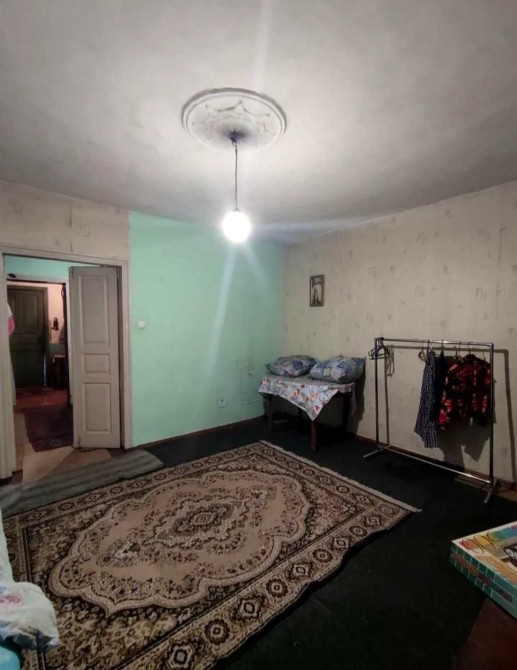 Будинок на два входи, високий цоколь, загальною площею 76 м2, 4 кімнати, газ, заведена міська вода, дві зливні ями, в кожній частині домоволодіння є свій льох, зручності і на вулиці і в літній кухні (санвузол і ванна).