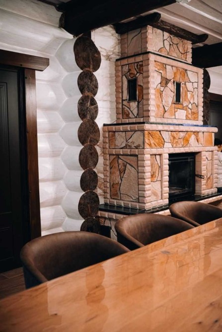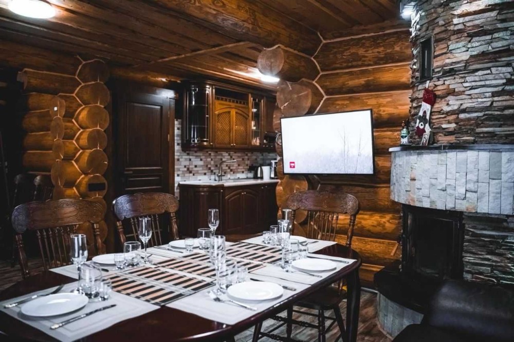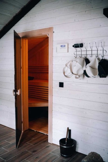 В ньому є: 4 спальні , кожна з окремим санвузлом, кухня, сауна, столова кімната з каміном і також хол для відпочинку поруч з сауною.